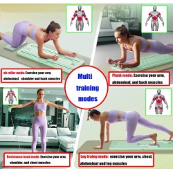 Planche abdominale multifonctionnelle avec bandes de résistance et tapis pour genoux, roue abdominale à rebond automatique avec support de coude, planche d'exercice abdominale multifonctionnelle, machine d'exercice abdominale pour un entraînement complet du corps.